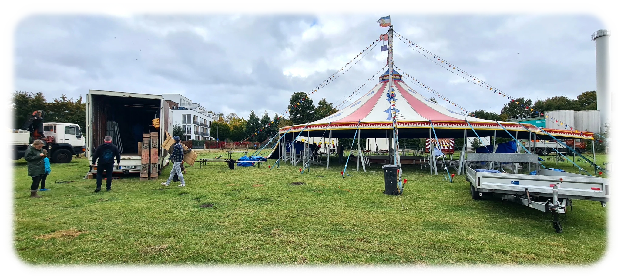 In der nächsten Woche findet die Zirkuswoche der GSNS statt. Heute haben wir gemeinsam mit Eltern, Lehrkräften und den Mitarbeitern des Projektzirkus Zaretti das Zirkuszelt aufgebaut.
